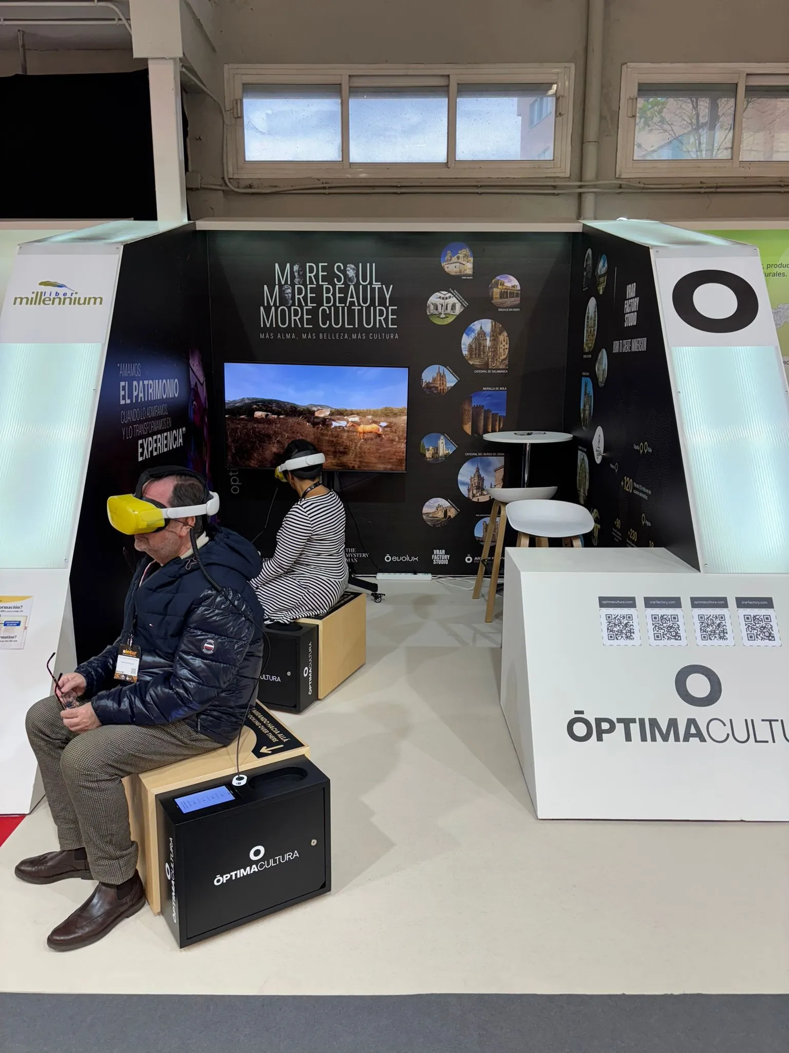 ÓptimaCultura ha afianzado su participación con stand propio, donde D. Francisco Gabarrón, director de ArtiSplendore y D. Higinio Almagro, responsable comercial, han recibido a diferentes personalidades, entre ellas al presidente de la Junta de Castilla y León, D. Alfonso Mañueco y también al presidente y secretario de la Red Huellas de Teresa. En el espacio se instalaron dos estaciones VR donde los asistentes podían disfrutar de un compendio de trabajos creados por ÓptimaCultura.